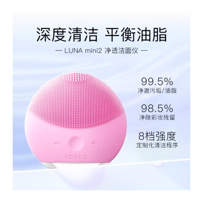 斐珞尔(FOREO)露娜洗脸仪LUNA mini2净透洁面仪平衡油脂洗脸仪电动 清洁毛孔洗脸神器女礼物送老婆 粉色 充电款